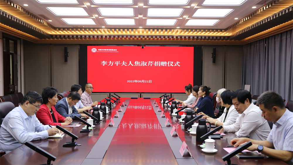 9月21日上午,李方平夫人焦淑芹捐贈儀式在河南大學(xué)鄭州龍子湖校區(qū)友蘭學(xué)堂三樓會議室舉行。李方平的夫人焦淑芹、洛陽市人大常委會副主任雷雪芹、李方平先生家人王軼梅、李連勇、李曉紅、蔣坤、李書瑤,校黨委副書記季波、黨委辦公室主任裴強(qiáng)、教育發(fā)展基金會秘書長劉波以及相關(guān)工作人員參加本次捐贈儀式。儀式由校友總會與教育發(fā)展基金會副主任魏春吉主持。