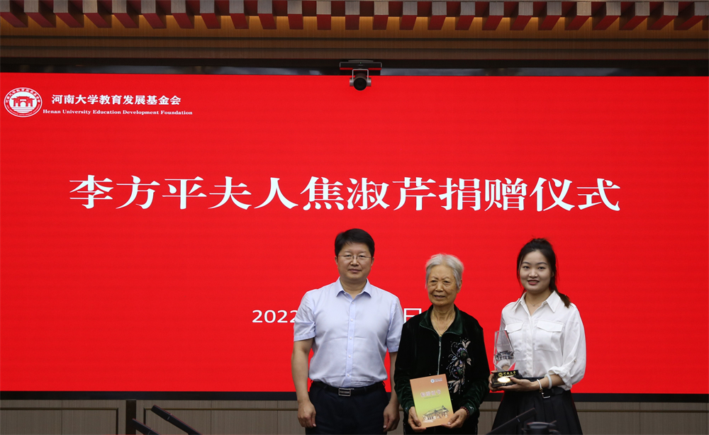 季波對焦淑芹一家為學(xué)??犊栀洷硎局孕牡母兄x,向校友們對學(xué)校的深情厚誼表示敬意!他指出,李方平先生是河南大學(xué)圖書館原黨委書記,為學(xué)校的發(fā)展嘔心瀝血,不辭勞苦,兒子、女兒和女婿都是河南大學(xué)的校友,河大情在幾代人中傳承和譜寫,體現(xiàn)了河南大學(xué)百年文脈源遠(yuǎn)流長,堪稱佳話。他表示,這筆捐贈,既是校友們向母校辦學(xué)110周年的獻(xiàn)禮,又是對學(xué)校復(fù)興、創(chuàng)建世界一流大學(xué)的期盼和支持。此次善舉也是育人教育、感恩教育的教科書,飲水思源,助力母校,值得大家學(xué)習(xí)。他介紹了學(xué)校歷史沿革和發(fā)展現(xiàn)狀,學(xué)校堅(jiān)持“立德樹人”根本任務(wù),迎來了“雙一流”“雙航母”疊加的千載難逢的發(fā)展機(jī)遇,學(xué)校發(fā)展處處需要資金支持,會珍惜校友們以及社會愛心人士對學(xué)校的捐助與支持。面對新形勢、新期盼,將努力工作,向著把河南大學(xué)建成世界一流大學(xué)的目標(biāo)邁進(jìn),不負(fù)校友的期望,不負(fù)大家對學(xué)校的支持!