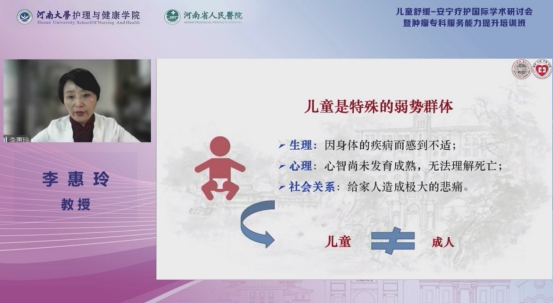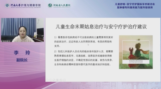 鄭州第九人民醫(yī)院副院長李玲作《安寧療護中的兒童服務實踐》報告