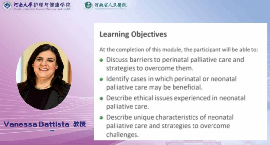 波士頓學院康乃爾護理學院臨床教授Vanessa Battista作《圍產期及新生兒的舒緩療護》《兒童疼痛管理》《溝通》《患兒離世前期的照護》等四篇報告