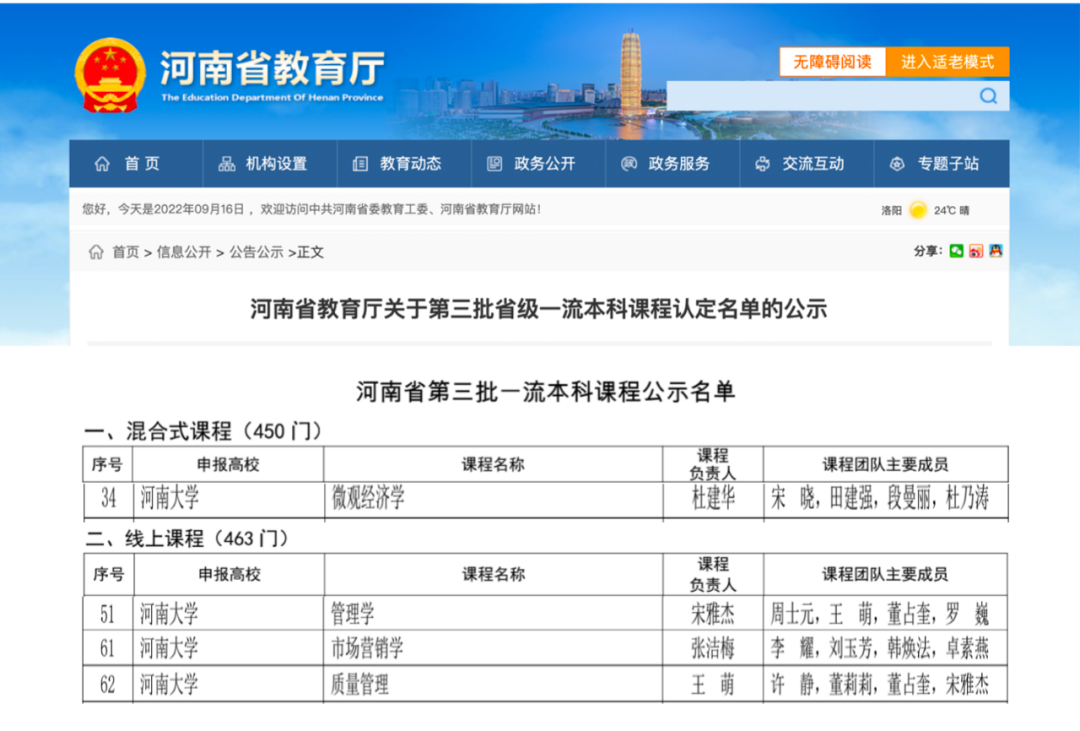 9月14日,河南省教育廳發(fā)布了關(guān)于第三批省級一流本科課程認(rèn)定名單的公示。河南大學(xué)商學(xué)院共有4門課程獲得認(rèn)定,其中,混合式課程1門:《微觀經(jīng)濟(jì)學(xué)》,線上課程3門:《管理學(xué)》、《市場營銷學(xué)》、《質(zhì)量管理》。這是繼《財務(wù)管理》(2020年度)獲批國家一流課程、《會計學(xué)》、《人力資源管理》、《跨境電商1210模式虛擬仿真實驗》(2021年度)獲批省級一流課程認(rèn)定之后,學(xué)院在一流課程“雙萬計劃”建設(shè)方面取得的又一項優(yōu)異成績。
