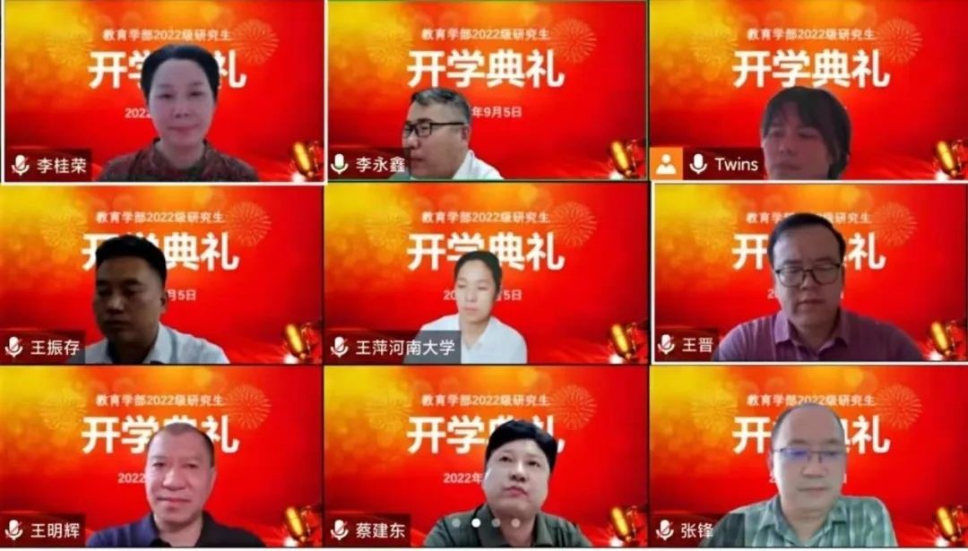 9月5日下午,教育學(xué)部2022級(jí)研究生開(kāi)學(xué)典禮在線上順利舉行,教育學(xué)部領(lǐng)導(dǎo)班子成員、教師代表、導(dǎo)師代表、輔導(dǎo)員以及2022級(jí)全體研究生新生參加了開(kāi)學(xué)典禮。開(kāi)學(xué)典禮作為新生入學(xué)教育第一課,為接下來(lái)各項(xiàng)新生入學(xué)教育工作的展開(kāi)打下了基礎(chǔ)。
