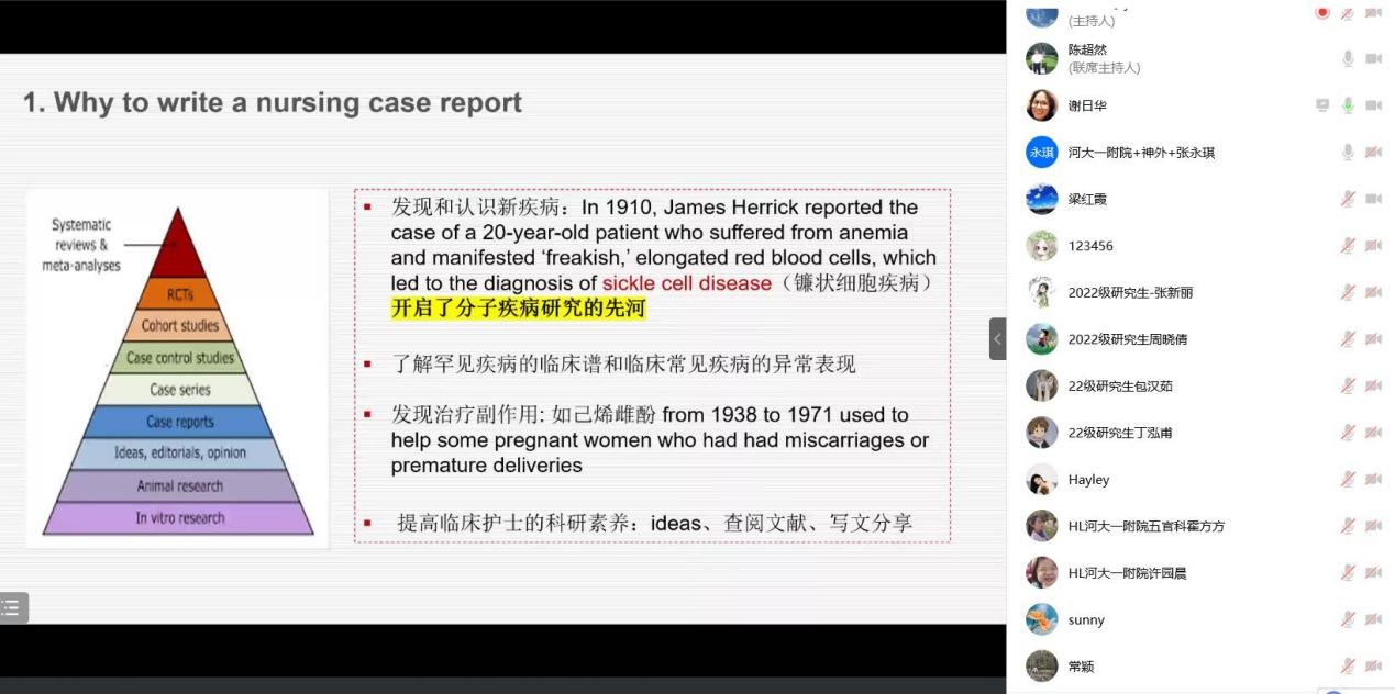 本次講座大家收獲頗豐,只有掌握了案例報告的研究思路、正確的研究方法等,才能凸顯疾病護(hù)理的新觀點(diǎn)、新知識,對進(jìn)一步提高學(xué)院教師、臨床教師及臨床護(hù)士的科研能力具有重要的指導(dǎo)意義。