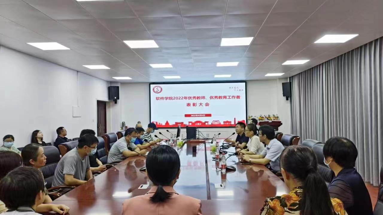 在第38個(gè)教師節(jié)到來(lái)之際,為強(qiáng)化榜樣的引領(lǐng)感召作用,充分展現(xiàn)廣大教師愛(ài)黨愛(ài)國(guó)愛(ài)校、立德樹(shù)人、自信自強(qiáng)的精神風(fēng)貌,9月9日上午,軟件學(xué)院在三樓會(huì)議室召開(kāi)2022年優(yōu)秀教師、優(yōu)秀教育工作者表彰大會(huì)。學(xué)院黨政領(lǐng)導(dǎo)班子全體成員、中層干部、受表彰人員以及教職工代表與會(huì)。