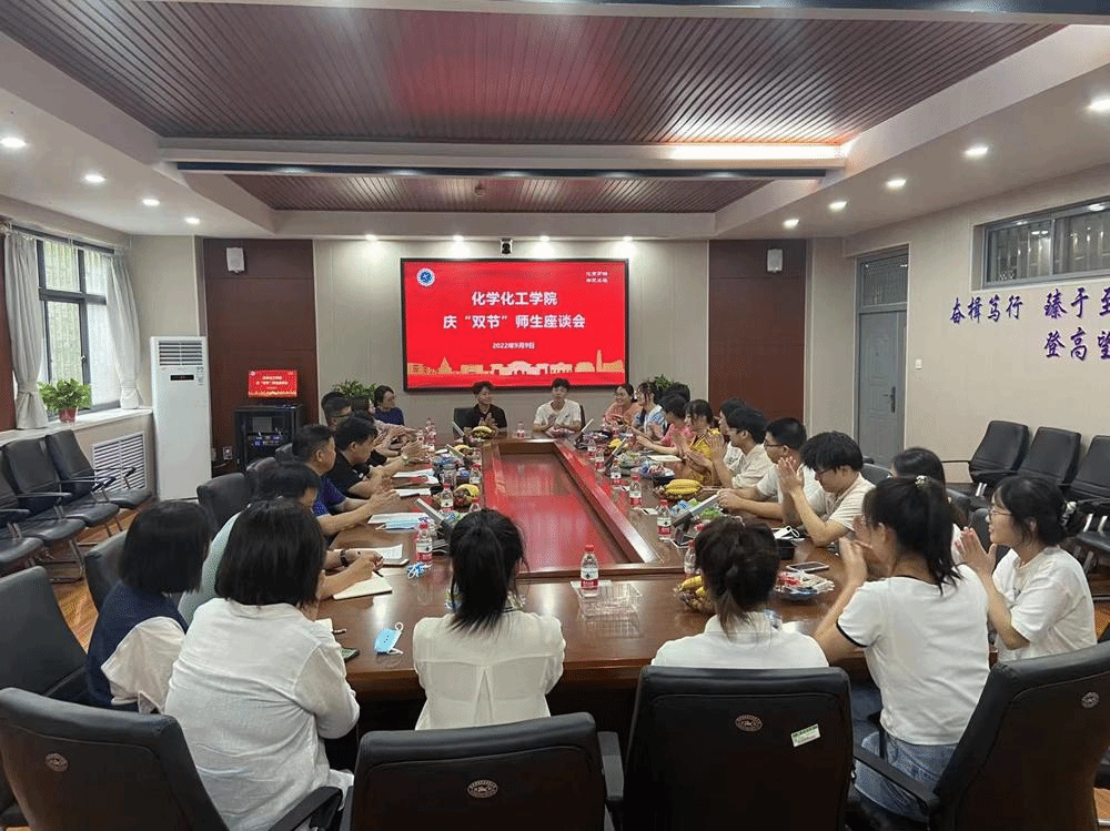 又是一年金秋月,中秋恰逢教師節(jié)。在中秋節(jié)和教師節(jié)來臨之際,9月9日下午,化學(xué)化工學(xué)院在學(xué)院第一會議室舉行慶“雙節(jié)”師生座談會,學(xué)院全體領(lǐng)導(dǎo)班子成員、輔導(dǎo)員和15位在校學(xué)生代表參加。座談會由學(xué)院黨委副書記馬文海主持。