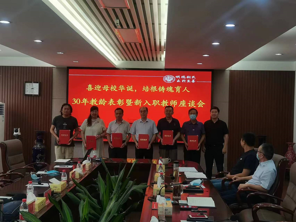 喜迎母校華誕,培根鑄魂育人。9月8日下午,在第38個(gè)教師節(jié)來臨之際,土木建筑學(xué)院舉辦30年教齡表彰暨新入職教師座談會,學(xué)院領(lǐng)導(dǎo)班子、受表彰教師和2020年以來新入職教師參與了本次活動(dòng)。座談會由學(xué)院黨委副書記趙艷忠主持。