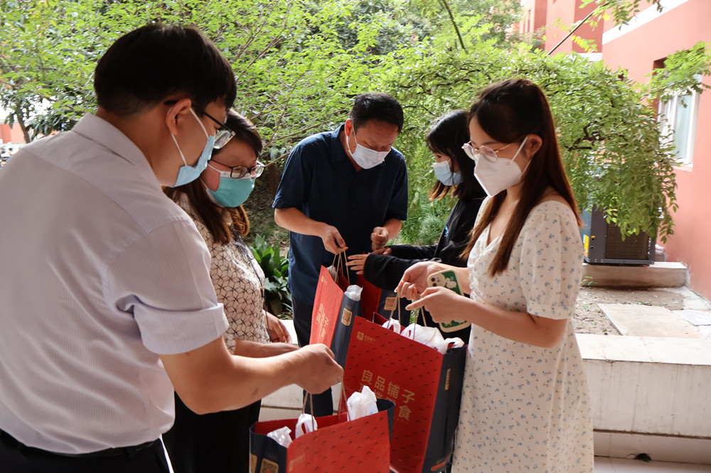 對(duì)于正在考研中的2019級(jí)學(xué)生,學(xué)院領(lǐng)導(dǎo)老師為其準(zhǔn)備中秋禮包并送至學(xué)生宿舍樓,讓考研學(xué)子在佳節(jié)來臨之際感受到來自學(xué)院的溫暖。據(jù)悉,學(xué)院在學(xué)生考研路上的重要節(jié)點(diǎn)都會(huì)為其送上深情關(guān)懷和美好祝福,為考研學(xué)子提振士氣。姬志闖為考研學(xué)子送去諄諄寄語(yǔ),他鼓勵(lì)同學(xué)們要堅(jiān)定理想信念,用頑強(qiáng)的意志和永不放棄的精神對(duì)待考研??佳袑W(xué)子紛紛表示學(xué)院的關(guān)愛和鼓勵(lì)是對(duì)其最大的支持,在接下來的學(xué)習(xí)中將帶著學(xué)院和老師的期望加倍努力,不負(fù)青春。