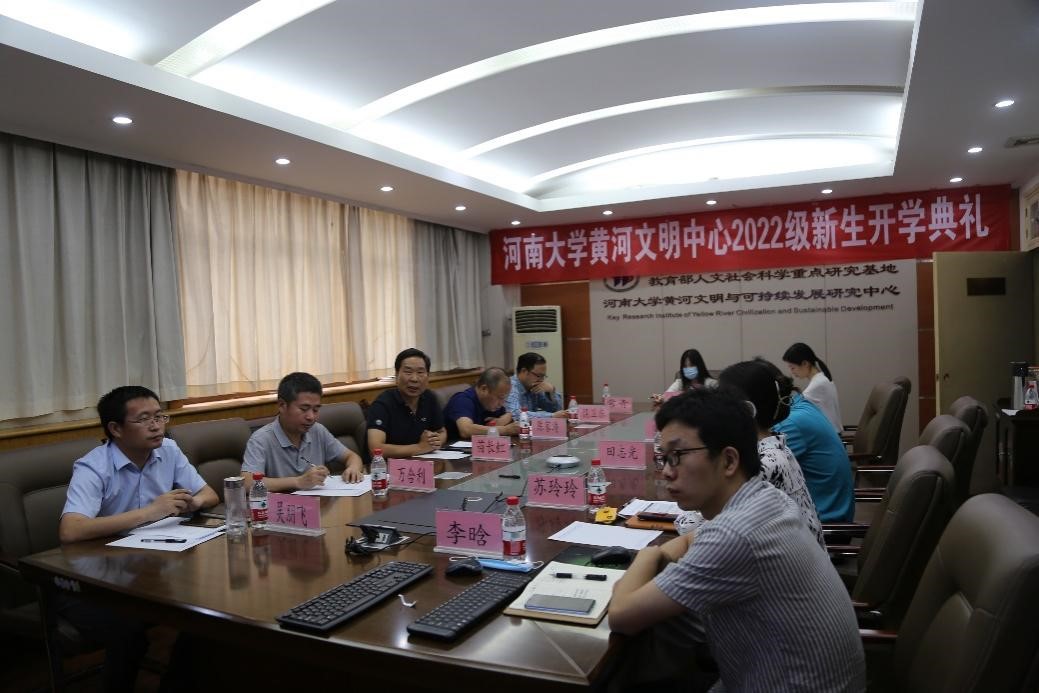 金秋九月,丹桂飄香。9月8日下午3點,黃河文明與可持續(xù)發(fā)展研究中心、黃河文明省部共建協(xié)同創(chuàng)新中心2022級研究生新生開學典禮,以線上線下相結合的方式在316會議室舉行。黃河文明與可持續(xù)發(fā)展研究中心黨委書記、主任,黃河文明省部共建協(xié)同創(chuàng)新中心主任苗長虹,副主任陳家濤、侯衛(wèi)東,黃河文明省部共建協(xié)同創(chuàng)新中心副主任胡全章、陳世強、田志光等在316會議室現(xiàn)場參會,中心全體老師和2022級新生在線上參加開學典禮。開學典禮由黃河文明中心黨委副書記、副主任萬合利主持。