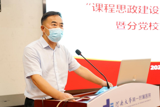 劉建勇在總結(jié)講話中,對第一附屬醫(yī)院教師們提出了三點要求和希望:一是要強(qiáng)化大學(xué)附屬醫(yī)院臨床教育教學(xué)主體職責(zé),全院上下要樹立課程思政意識,積極圍繞專業(yè)課課程思政開展教學(xué)改革,將思政教育融入醫(yī)學(xué)人才培養(yǎng)的各個環(huán)節(jié)。二是臨床教師要學(xué)以致用,深入挖掘醫(yī)學(xué)專業(yè)課程中的思政元素,豐富專業(yè)課程育人內(nèi)涵,實現(xiàn)專業(yè)教育與思政教育同向同行。三是積極探索建立教研室和黨支部課程思政融合教學(xué)團(tuán)隊,推進(jìn)內(nèi)、外、婦、兒等臨床專業(yè)主干課程開展課程思政教學(xué)改革試點工作,為實現(xiàn)“三全育人”,培養(yǎng)德才兼?zhèn)涞淖吭结t(yī)學(xué)人才作出應(yīng)有的貢獻(xiàn)。